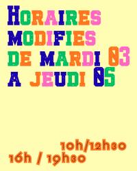 Cette semaine, attention, horaires un peu modifiés jusqu'à jeudi...