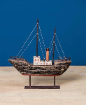 Black wooden boat on base. Haut 25,5 cm , largeur 23,5 cm, profondeur 6,2 cm