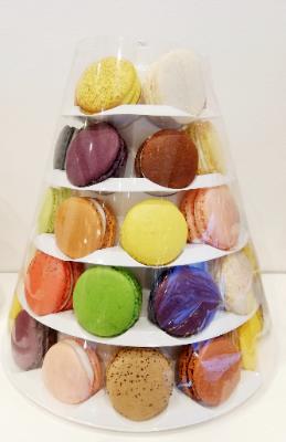 Pyramide de 45 macarons à choisir en boutique parmi les 27 saveurs en moyenne. Nous conseillons de prévoir 3 macarons par personnes ainsi, cette pyramide est pour 15 personnes. Le socle est réutilisable pour que vous n'ayez plus que les macarons à acheter une prochaine fo
