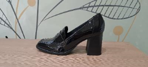 Mocassin à talon vernis noir (